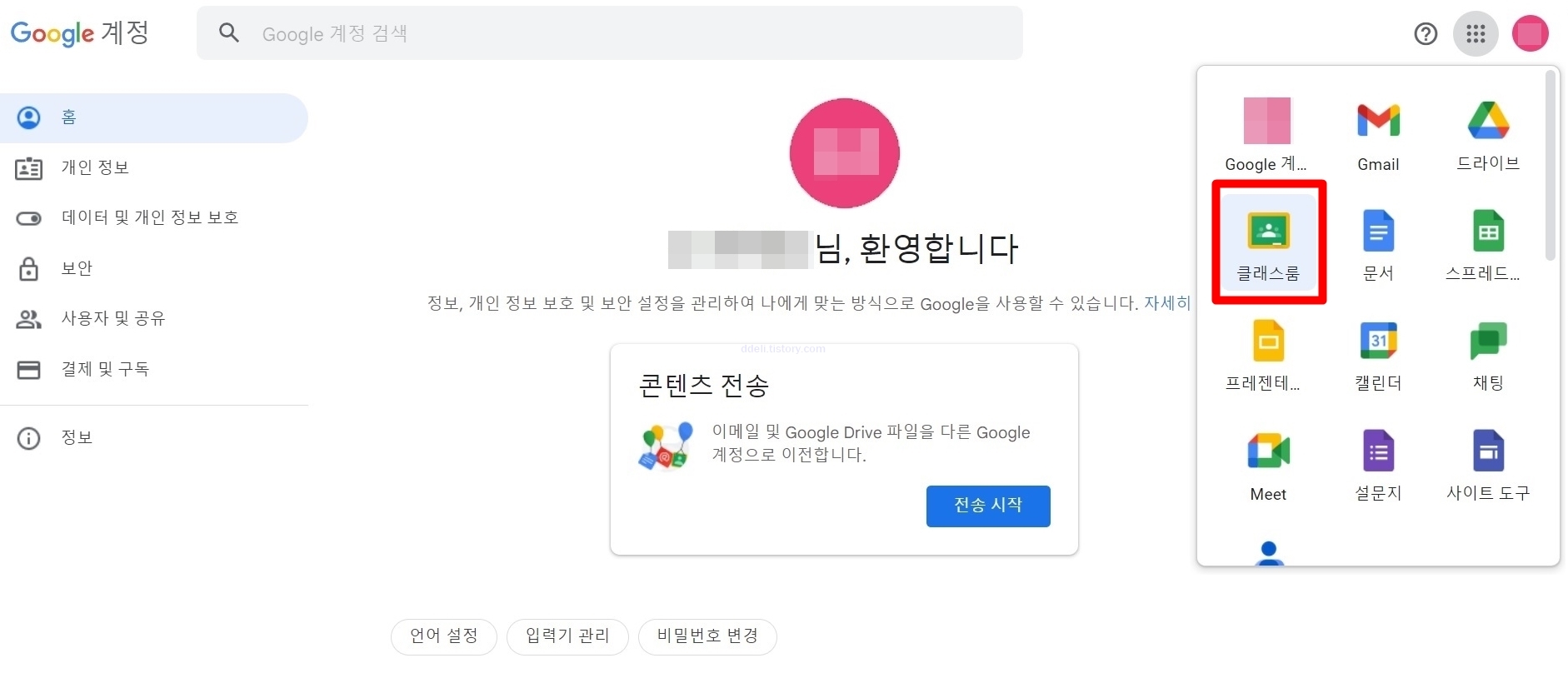 | 05. 계정 화면에서 다시 메뉴를 눌러 클래스룸으로 접속 |